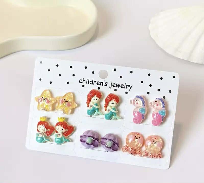 Set of 6 clip-on earrings Acrylic Resin Charm Colour and Design as shown in pictures